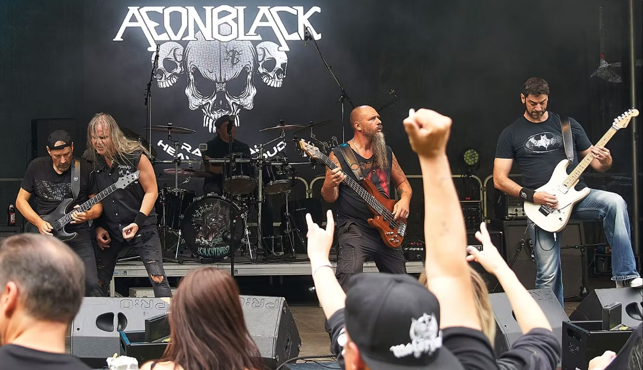 Mit Aeonblack betritt eine Band die Bühne des Fahrdorf Open Air, die modernen Metal mit düsterer Atmosphäre...